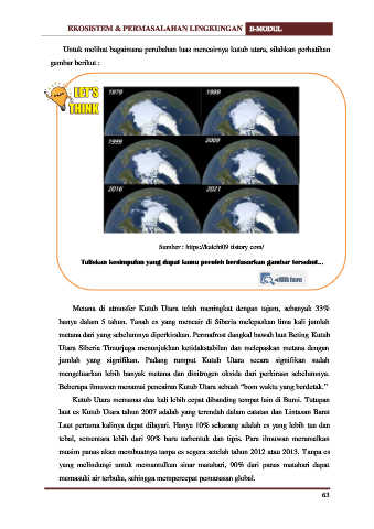 Untuk melihat bagaimana perubahan luas mencairnya kutub utara, silahkan perhatikan