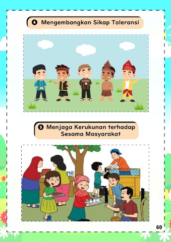Mengembangkan Sikap Toleransi 4 Mengembangkan Sikap Toleransi Keberagaman Keberagaman Menjaga Kerukunan terhadap 5 Menjaga Kerukunan terhadap Sesama Masyarakat Sesama Masyarakat 60
