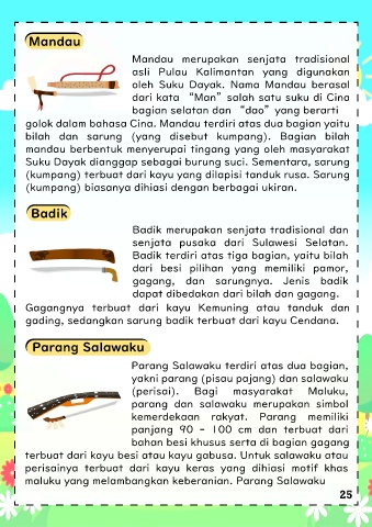 golok dalam bahasa Cina. Mandau terdiri atas dua bagian yaitu