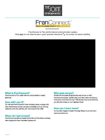 (intranet). FranConnect access. Additionally, your clinic team will share a