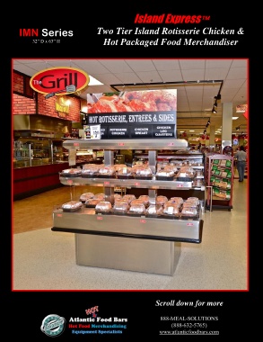 Island Express Two Tier Island Rotisserie Chicken & IMN Series 32” D x 63” H Hot Packaged Food Merchandiser Scroll down for more
