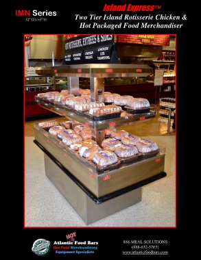 IMN Series Island Express 32” D x 63” H Two Tier Island Rotisserie Chicken & Hot Packaged Food Merchandiser