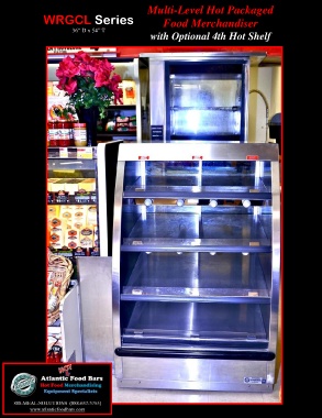 Multi-Level Hot Packaged WRGCL Series Food Merchandiser 36” D x 54” T with Optional 4th Hot Shelf