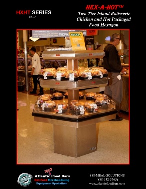 HEX-A-HOT HXHT SERIES Two Tier Island Rotisserie 62-¾” H Chicken and Hot Packaged Food Hexagon