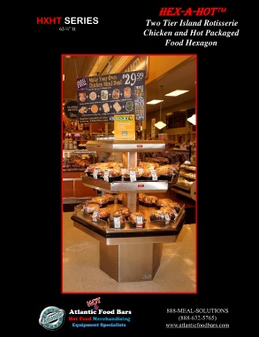 HEX-A-HOT HXHT SERIES Two Tier Island Rotisserie 62-¾” H Chicken and Hot Packaged Food Hexagon