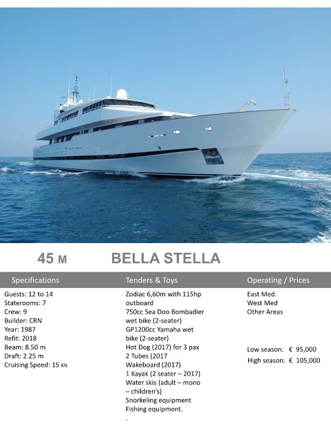 Draft: 2.25 m 2 Tubes (2017 High season: € 105,000