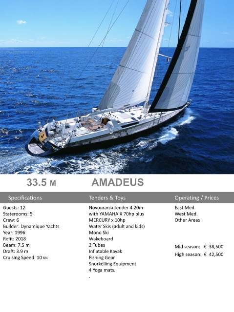 Beam: 7.5 m 2 Tubes Mid season: € 38,500