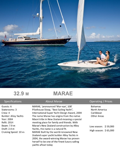 Cruising Speed: 10 KN MARAE Built by the world-renowned New