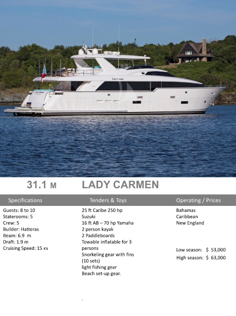 Cruising Speed: 15 KN persons Low season: $ 53,000