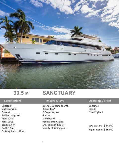 Beam: 6.4 m Snorkel gear (8 sets) Low season: $ 34,000