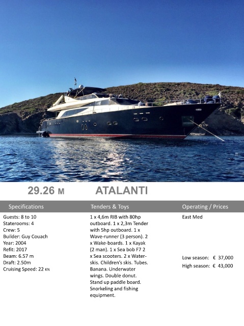 Beam: 6.57 m x Sea scooters. 2 x Water- Low season: € 37,000