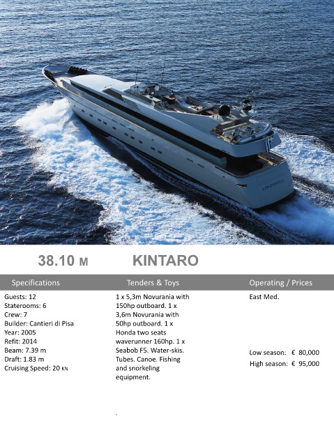 Draft: 1.83 m Tubes. Canoe. Fishing High season: € 95,000