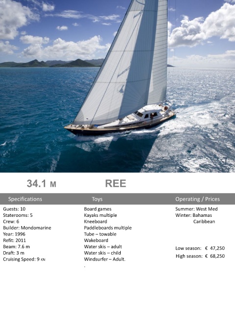 Beam: 7.6 m Water skis – adult Low season: € 47,250