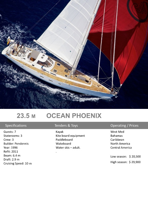 Cruising Speed: 10 KN High season: $ 29,900