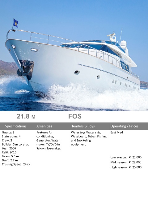 Beam: 5.6 m Low season: € 22,000