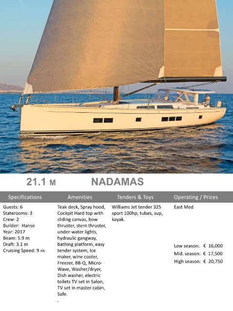 Cruising Speed: 9 KN tender system, Ice Mid. season: € 17,500