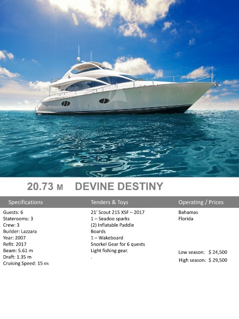 Beam: 5.61 m Light fishing gear. Low season: $ 24,500