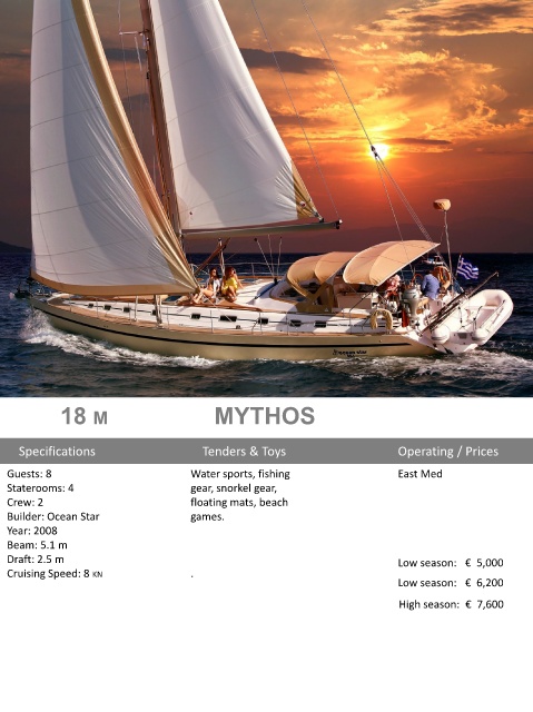Cruising Speed: 8 KN . Low season: € 6,200