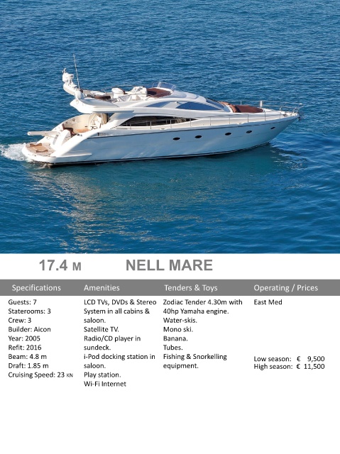 Draft: 1.85 m saloon. equipment. High season: € 11,500