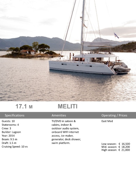 Cruising Speed: 10 KN Mid. season: € 18,200