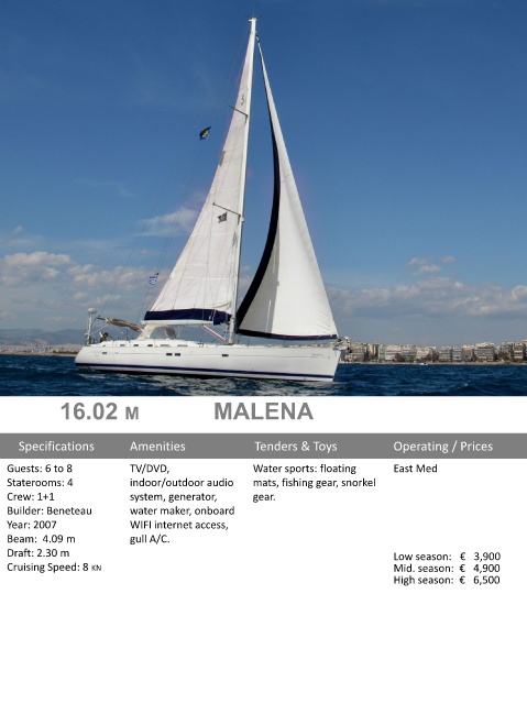Cruising Speed: 8 KN Mid. season: € 4,900