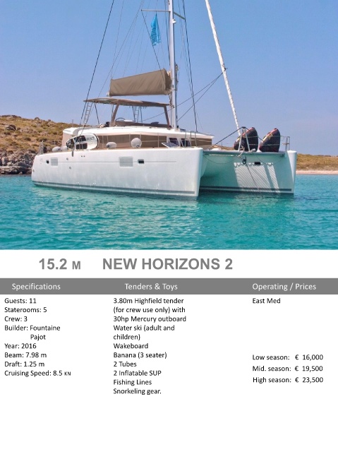Beam: 7.98 m Banana (3 seater) Low season: € 16,000