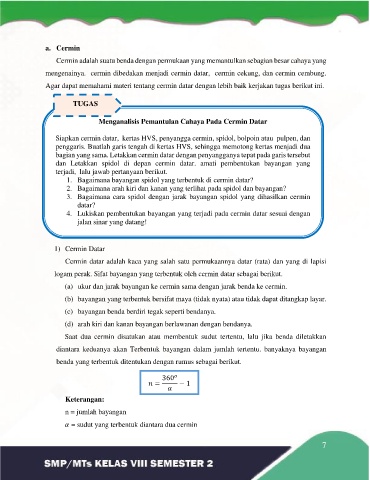 Agar dapat memahami materi tentang cermin datar dengan lebih baik kerjakan tugas berikut ini.