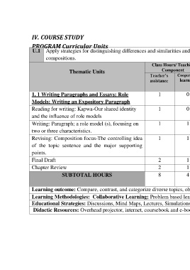 Thematic Units Component Hours application and hours including