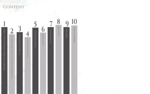 content 1 5 7 8 9 10 2 3 4 6 Sourkea Hotel Noir 1928 CHA CHA Samsung Office RUAMPAT YASOTHON international Clinic LG (Siem Reap Branch) La pisah restaurant Chheng Residence Dora Home Sok Siphana & Associates (Siem Reap Branch)
