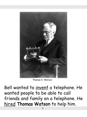 Thomas A. Watson Bell wanted to invent a telephone. He wanted people to be able to call friends and family on a telephone. He hired Thomas Watson to help him. 9