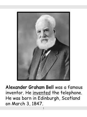 Alexander Graham Bell was a famous inventor. He invented the telephone. He was born in Edinburgh, Scotland on March 3, 1847. 1