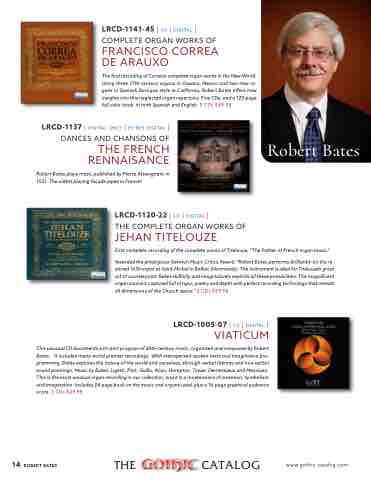 The first recording of Correa’s complete organ works in the New World. Using three 17th-century organs in Oaxaca, Mexico and two new or- gans in Spanish Baroque style in California, Robert Bates offers new insights into this neglected organ repertoire. Five CDs, and a 120-page full color book, in both Spanish and English. 5 CDS $49.98