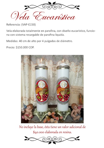 Vela elaborada totalmente en parafina, con diseño eucarístico, funcio-