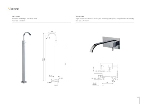 Single Lever Basin Mixer without Popup Waste Single Lever Tall Boy with 85mm Extension Body without Popup Floor Mounted Single Lever Basin Mixer Single Lever Concealed Basin Mixer (Wall Mounted) with Spout (Composite One Piece Body)