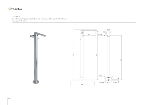 Floor Mounted Single Lever Bath Mixer with swivel spout & Provision for Hand Shower