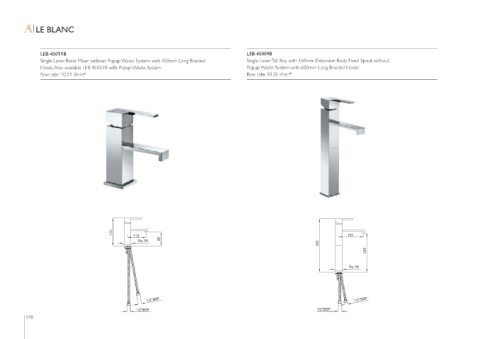 Hoses Also available LEB-45051B with Popup Waste System Popup Waste System with 600mm Long Braided Hoses flow rate: 8.91 l/min* flow rate: 10.06 l/min*