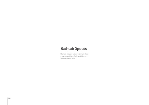 Bathtub Spouts Dramatic lines, and a clean finish make these a sophisticated, but refreshing addition to a luxurious, elegant bath. 256 257