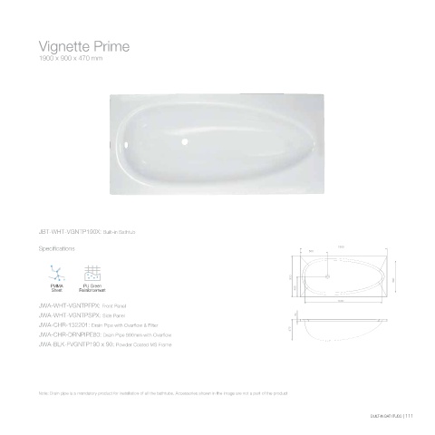 Note: Drain pipe is a mandatory product for installation of all the bathtubs. Accessories shown in the image are not a part of the product