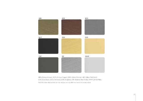 GDS: (Gold Dust) | GLD: (Full Gold) | GRF: (Graphite) | SSF: (Stainless Steel Finish) | WHM: (White Matt)