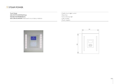 • Touch navigation • Descaling point • Tempreture control • Shower tray