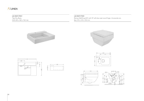 Table Top Basin, Rimless Wall Hung WC with UF soft close seat cover, Hinges , Accessories set,