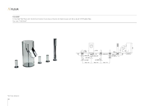5-Hole Bath Tub Mixer with Hot & Cold Control Cocks Spout, Divertor & Hand shower with 8mm dia. & 1.5M Flexible Tube