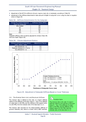 Subgrade stiffness value should be adjusted for climate (Table 39)