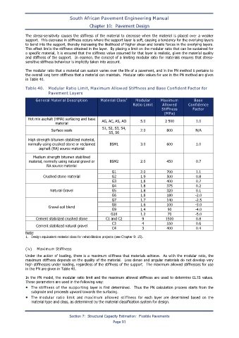 Table 40. Modular Ratio Limit, Maximum Allowed Stiffness and Base Confident Factor for
