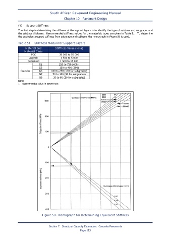 the subbase thickness. Recommended stiffness values for the materials types are given in Table 51. To determine