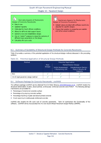 8.3 Summary of Suitability of Structural Design Methods for Concrete Pavements