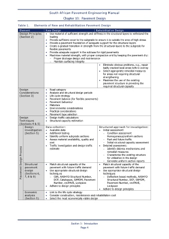 Table 1. Elements of New and Rehabilitation Pavement Design