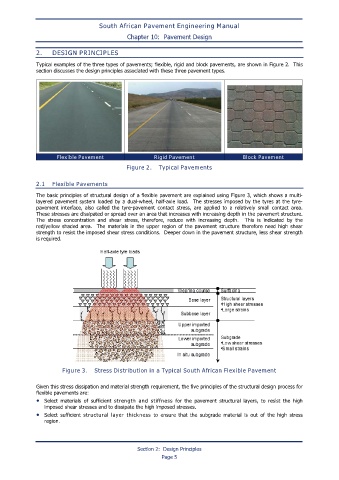 The basic principles of structural design of a flexible pavement are explained using Figure 3, which shows a multi-
