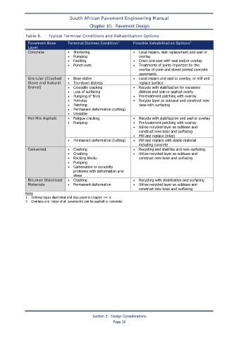Table 8. Typical Terminal Conditions and Rehabilitation Options