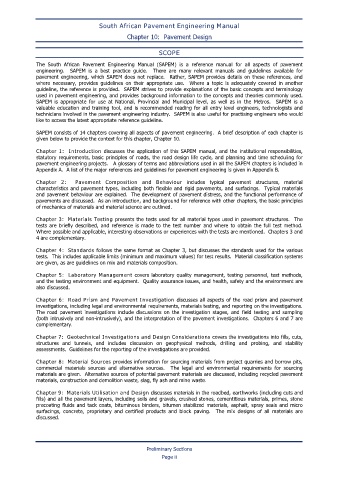 SAPEM consists of 14 chapters covering all aspects of pavement engineering. A brief description of each chapter is